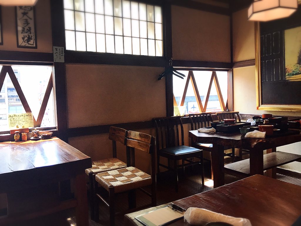 カウンター席も入り口付近にあるようでしたが、入店すると気前の良さそうなおばちゃま店員さんやおじちゃま店員さんが「お好きなとこどうぞー」と、テーブル席に案内してもらいました。