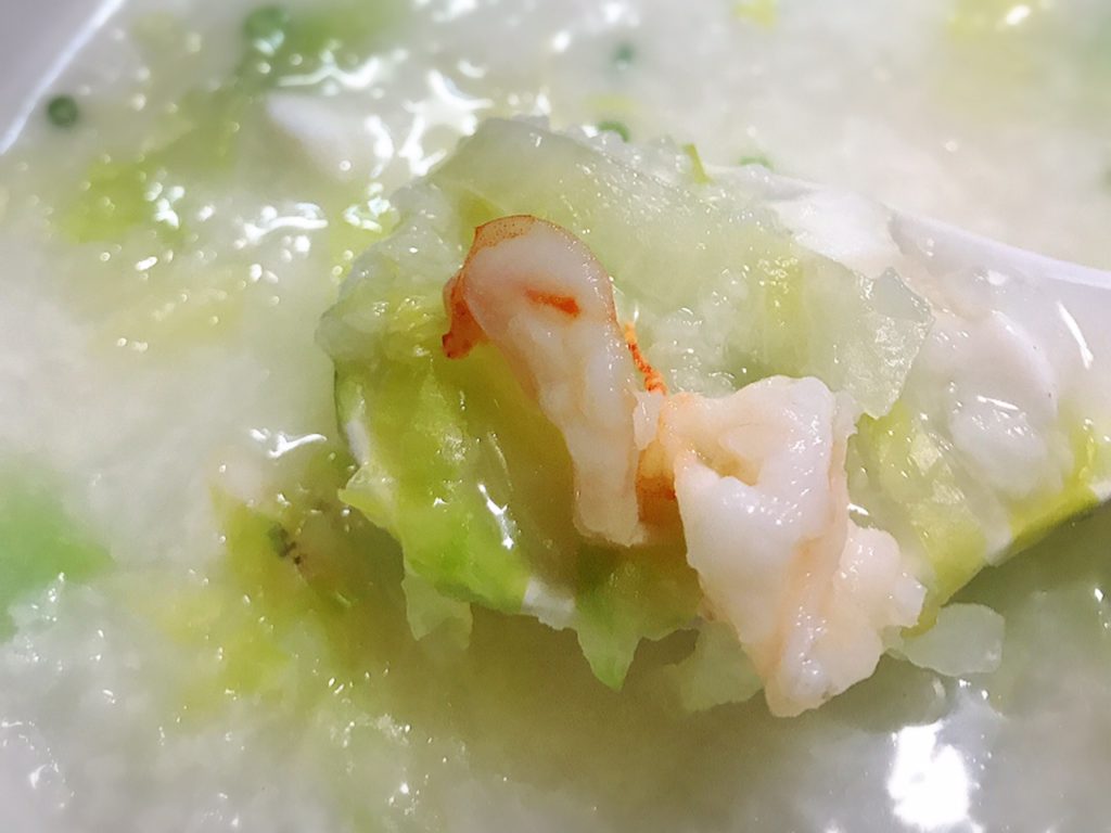 薄味のお粥+味の濃いえびニラまんの組み合わせで一緒に食べるのが好きなんですが、一回、お粥全部食べ終わってから出てきたこともある。ご注意を。