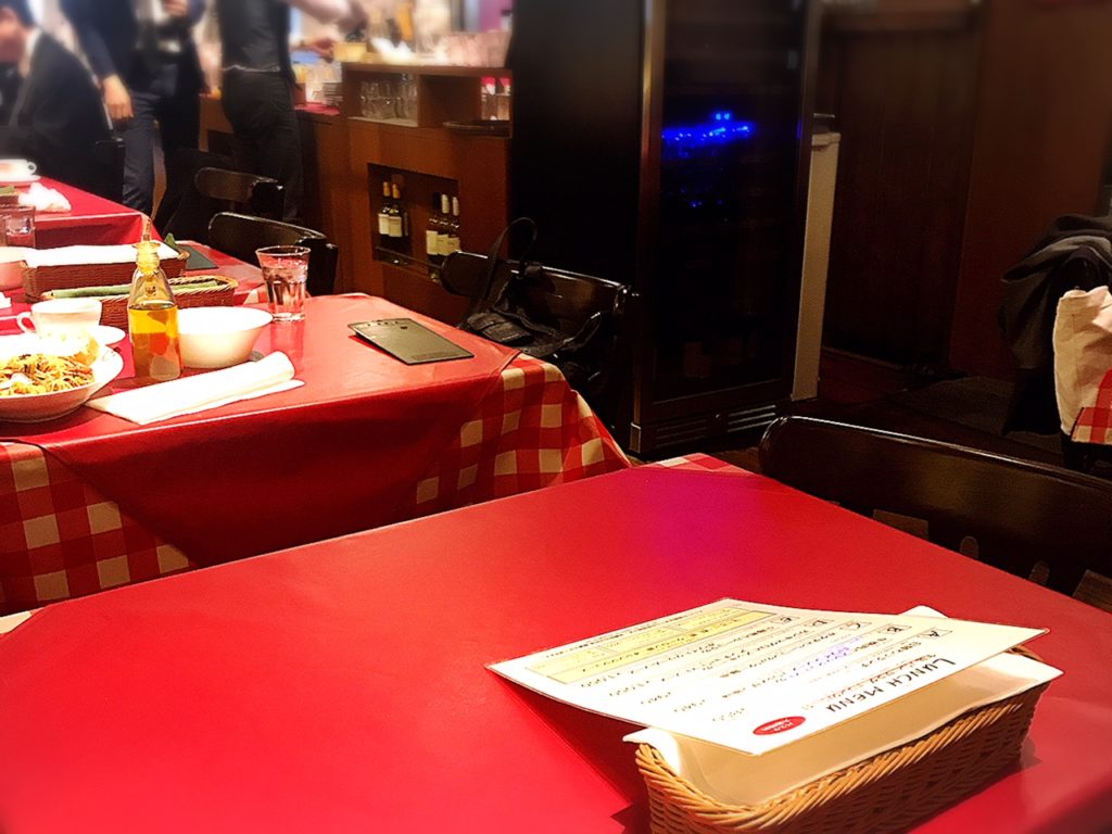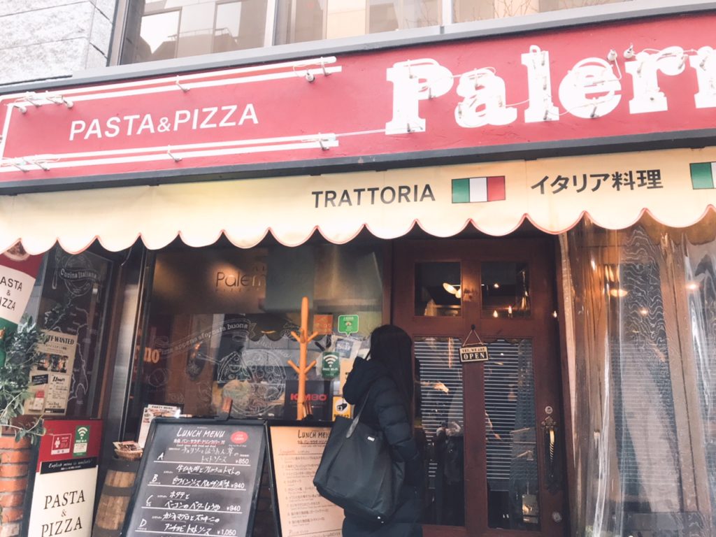 赤坂見附駅を繁華街側に出てすぐ、向かって左へ歩くと赤い看板のお店「パレルモ」に出会えます。