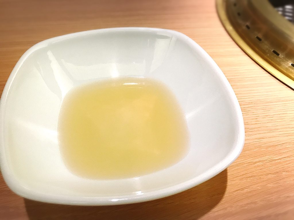 いわゆる焼肉のタレ、ではなくこの黄金色の「お出汁」で食べるのが天壇流。