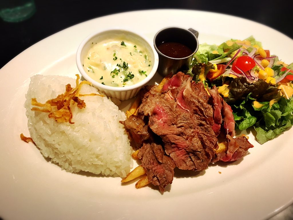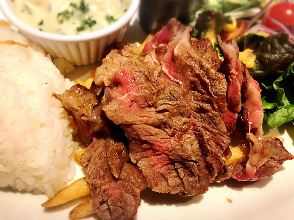 むかーし行ったときは一枚肉がデデンッと出てきたりしたのでメニューや部位によって提供の仕方はバラバラのよう。しかし肉の下にこれまた意外と量のあるフライドポテトが敷いてあるのは毎回おなじみ。