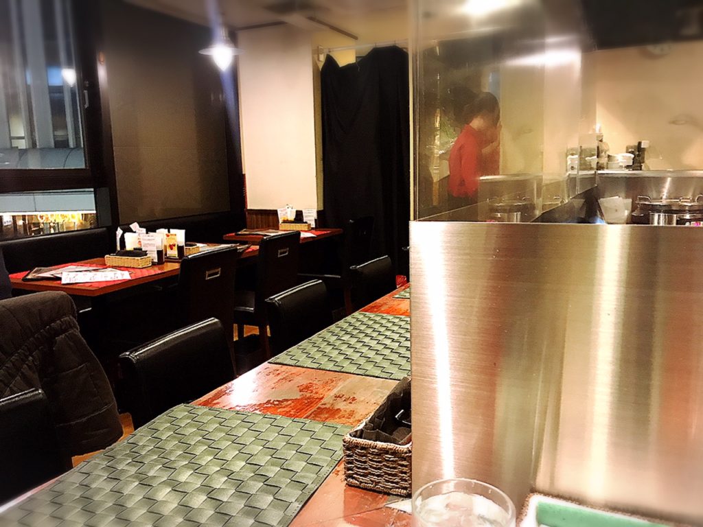 店内はこんな感じで、厨房を囲むようにカウンターと、テーブル席が3つくらい