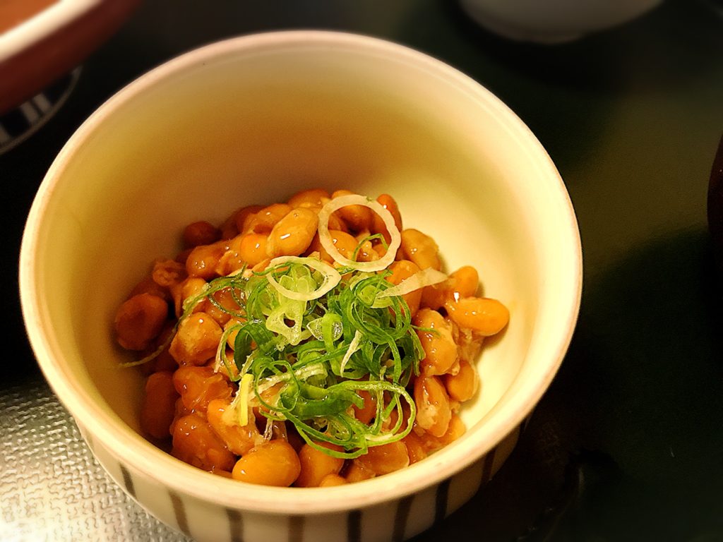ひさびさのちゃんとした和食の機会なのでご飯を美味しくたいらげたく、+100円で「納豆」を追加しております。